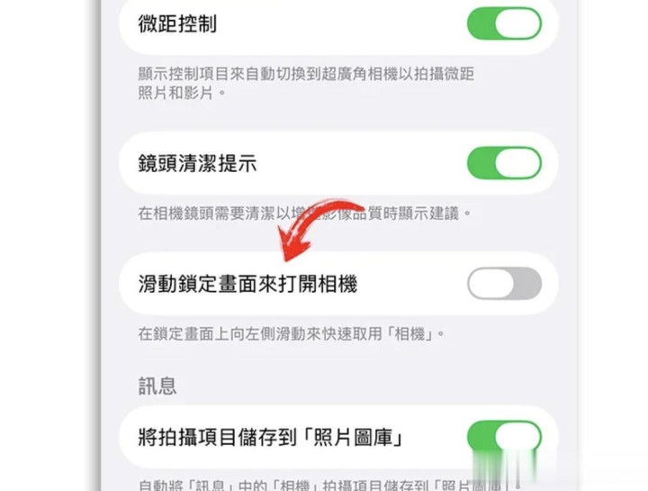 在 设置 → 相机 中,你会发现一个全新开关:「滑动锁定画面来打开相机」。只要将其关闭,从锁定画面左滑就不会再自动启动相机 App,彻底杜绝误触问题。